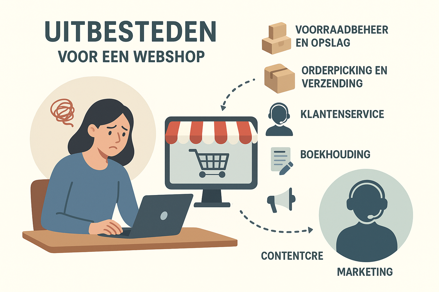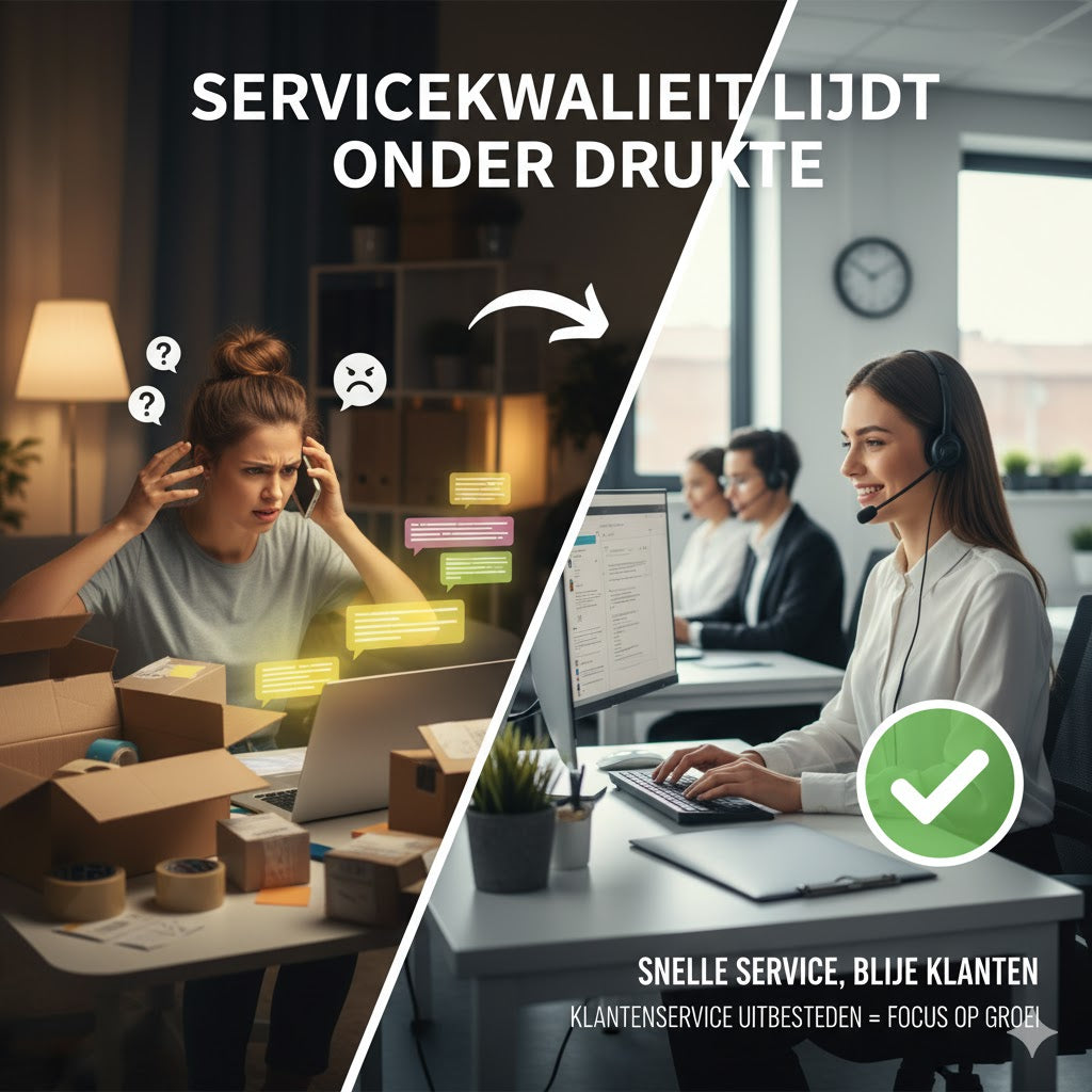 In het begin kun je veel zelf regelen, maar zodra je webshop sneller groeit, wordt uitbesteden vaak noodzakelijk om fouten, vertraging en stress te voorkomen.